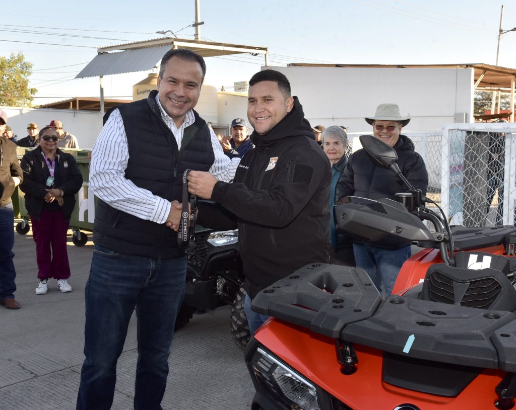 Agradeció a quienes recibieron el equipo que constó de 4 cuatrimotos, 4 remolques, una retroexcavadora, 10 contenedores de residuos y un vehículo eléctrico, así como a los integrantes del Patronato Kino Limpio que tienen una causa común y como ciudadanos están preocupados por tener un Kino en buenas condiciones.
