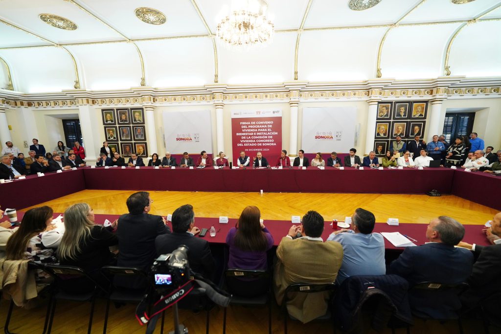 Posteriormente, se llevó a cabo la firma del convenio del Programa de Vivienda para el Bienestar, a cargo del gobernador Alfonso Durazo Montaño; Octavio Romero Oropeza, director general de Infonavit; y Rodrigo Chávez Contreras, director de Conavi.