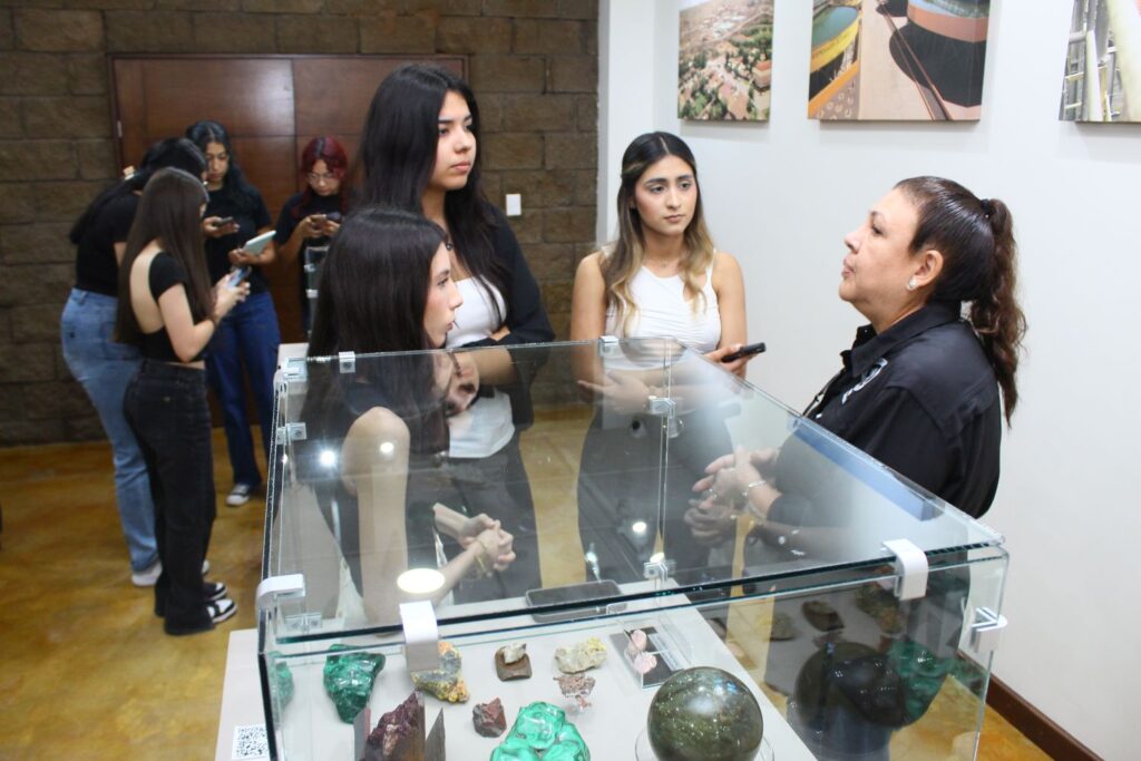 Luego de conocer los programas, actividades y alianzas que realiza la AIMMGM Distrito Sonora a favor de la educación, los más de cien estudiantes del Programa Ingeniero Minero, recorrieron el Museo de Minería Porfirio Padilla Lara, donde observaron más de 170 muestras de minerales en existencia.