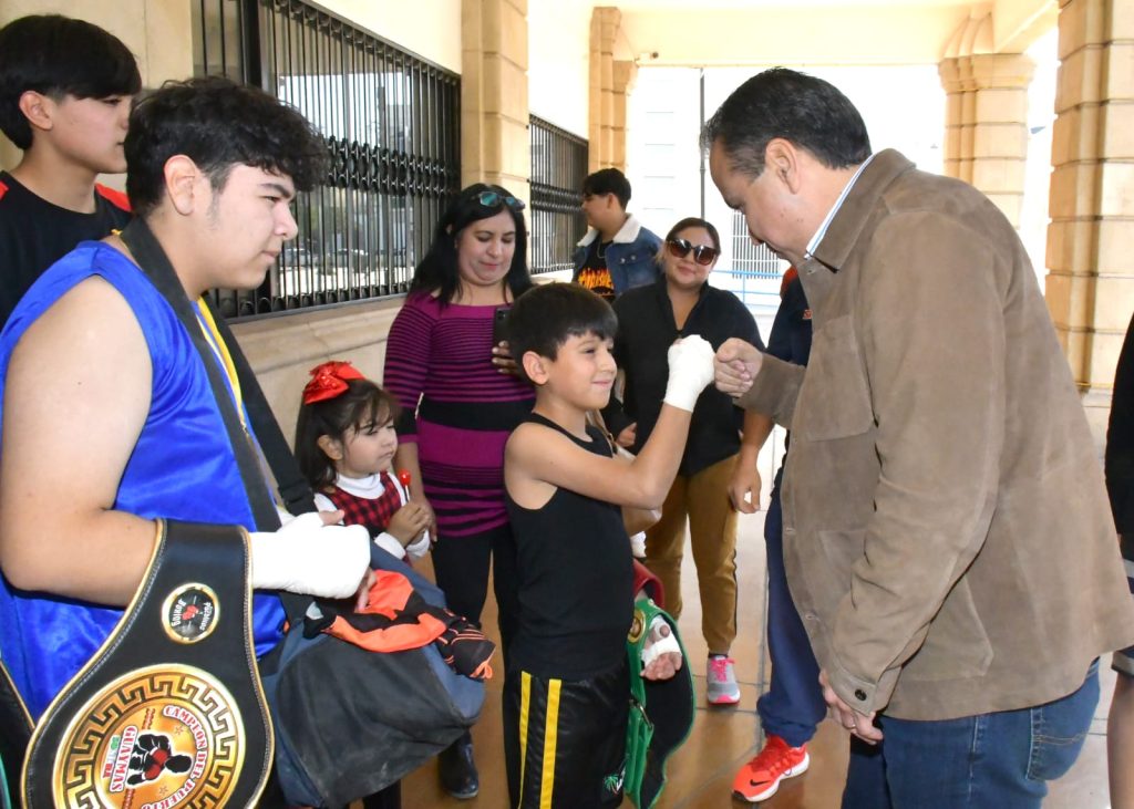 Atestiguaron este acto niños de entre 9 y 16 años del gimnasio Juan Francisco “Gallo” Estrada, acompañados por familiares y su entrenador de box, Jesús Vladimir Corral Ayub, quien reflexionó respecto a que la disciplina y constancia que requieren los deportes alejan a la niñez y la juventud de influencias negativas para sus vidas.