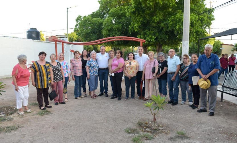 Las mejoras incluyen la instalación de nuevas bancas, ejercitadores, juegos infantiles, rehabilitación de kiosko, sistema de riego por goteo, construcción de banquetas e iluminación con una inversión de 774 mil 544 pesos.