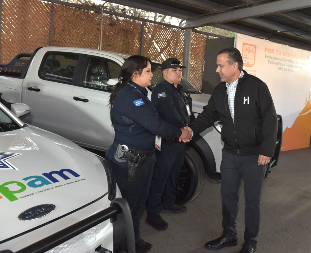 Hermosillo, Sonora; 4 de febrero, 2025.- “Más vigilancia significa más cercanía de la Policía Municipal en las colonias y esa más cercanía también más tranquilidad, para más familias hermosillenses en la Nuevo Hermosillo”, expresó Antonio Astiazarán Gutiérrez en la entrega de diez patrullas eléctricas y un sistema fotovoltaico en la colonia Nuevo Hermosillo.