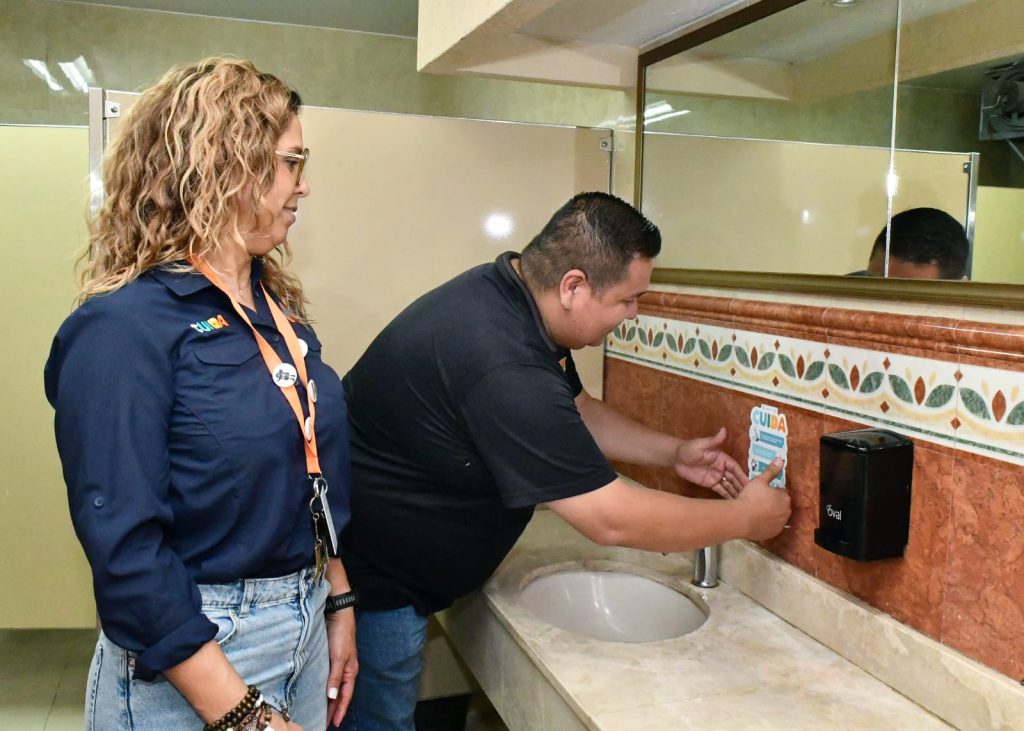 Además, se colocaron calcomanías en sanitarios e instalaciones del Palacio Municipal con mensajes de concientización, medida que también se replicará en el resto de las oficinas municipales.