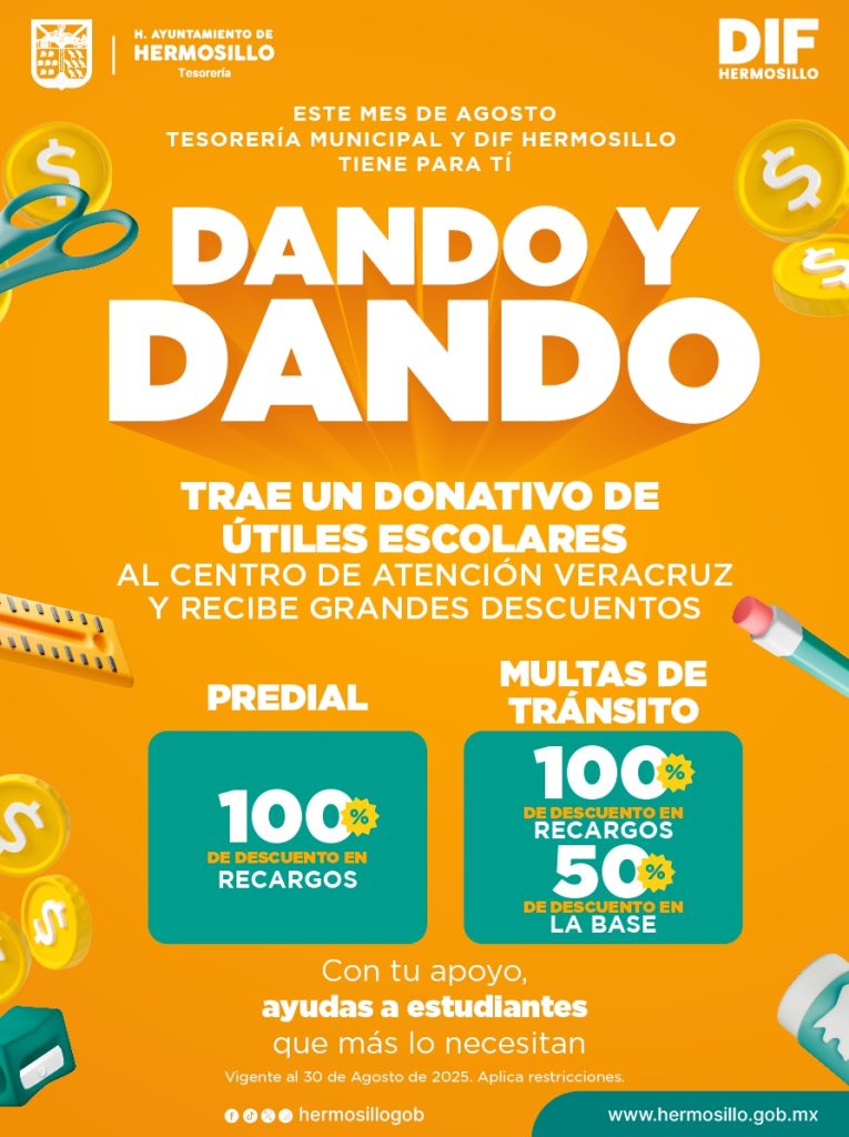 -Ofrecerán descuentos en Predial y multas de Tránsito a quienes donen útiles escolares; lo recaudado será destinado a estudiantes apoyados por DIF Hermosillo.