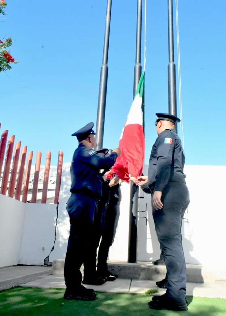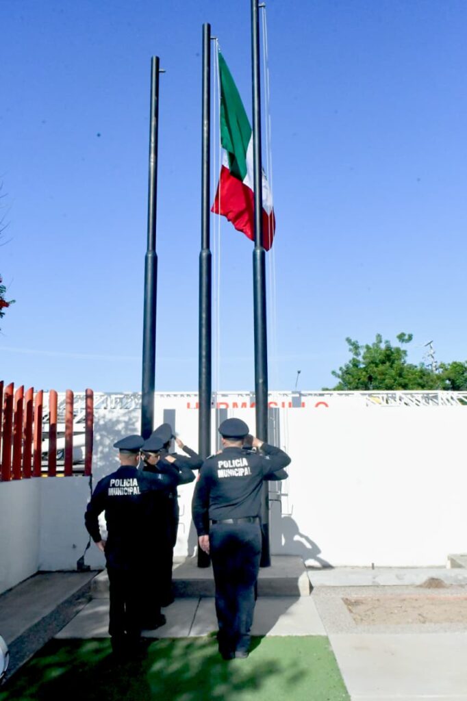En la ceremonia solemne, que estuvo encabezada por el comisario general de la Policía de Hermosillo, Alonso Durón Montaño, se rindieron honores a la bandera, con el apoyo de la Banda de Guerra y de la Escolta de la Jefatura de Policía preventiva y Tránsito Municipal.