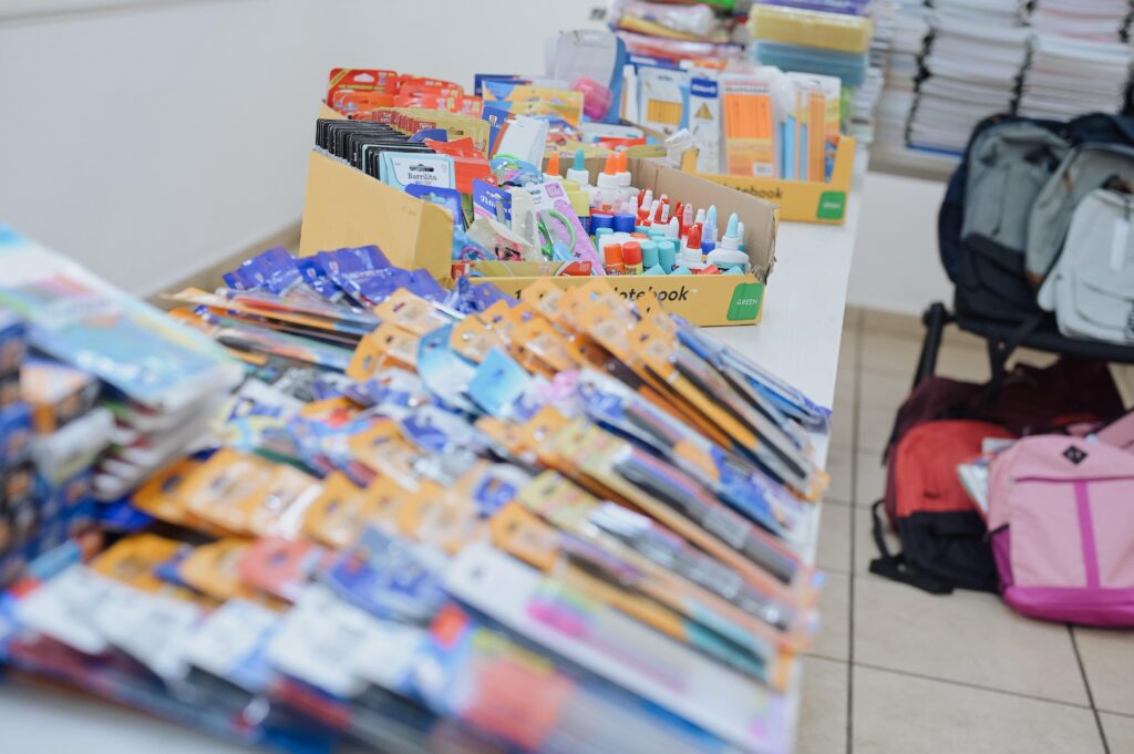 Fueron 3 mil 583 artículos, entre cuadernos, paquetes de hojas, paquetes de lápices, paquetes de plumas, colores, crayolas, plastilinas, tijeras, sacapuntas, borradores, pegamentos, calculadoras, lapiceras, mochilas, juegos de reglas, cajas del clips, cintas adhesivas y acuarelas.