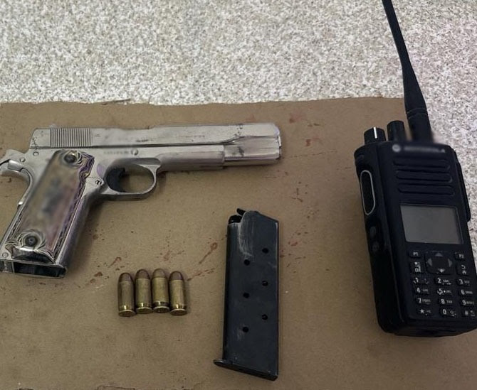 En los patrullajes, los oficiales observaron al conductor arrojar la materia desde su vehículo; sin embargo, se le marcó el alto y, al revisar la zona, realizaron el hallazgo de un arma de fuego calibre .45, un radio portátil y un cargador con cartuchos.