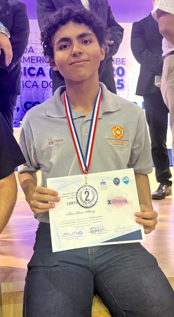 Hermosillo, Sonora; 8 de septiembre de 2025.- Alán Flores Alaniz, estudiante del Colegio de Bachilleres del Estado de Sonora (Cobach), conquistó la medalla de plata en la Olimpiada Centroamericana y del Caribe de Física 2025 (Ocaffi), celebrada en Santo Domingo, República Dominicana, y con esta hazaña puso en alto el nombre de México.