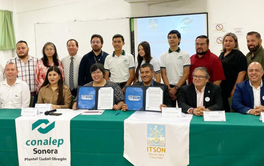 Cajeme, Sonora; 5 de septiembre de 2025.- Con el propósito de fortalecer la educación y ofrecer mayores posibilidades de desarrollo académico y profesional a los jóvenes de la región, el Gobierno de Sonora, a través del Colegio de Educación Profesional Técnica del Estado de Sonora (Conalep Sonora), trabajará en colaboración con el Instituto Tecnológico de Sonora (ITSON).