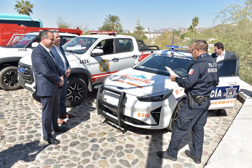 La muestra que forma parte de las acciones de innovación que impulsa Toño Astiazarán, incluyó una bombera, una barredora, patrullas eléctricas tipo SUV, Pick Up y Sedán, un camión del sistema H Bus, y el robot SERI (Sistema de Extinción Robótica de Incendios).