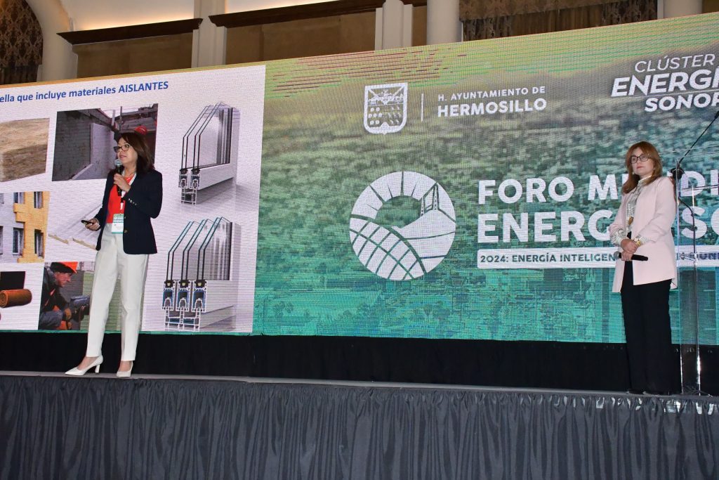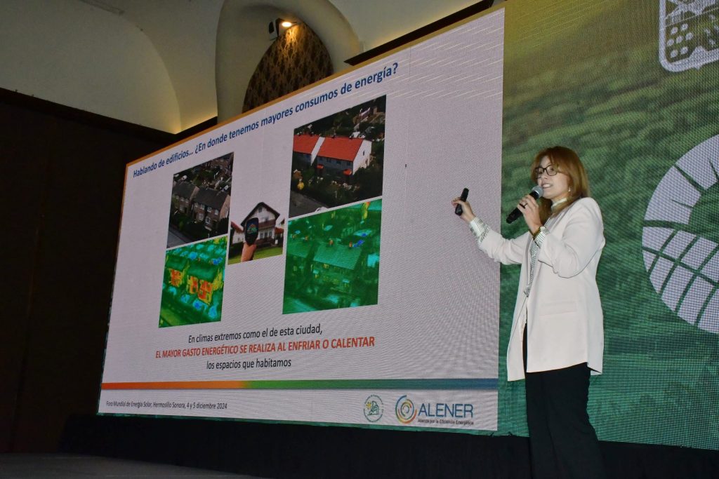 Hermosillo, Sonora; 4 de diciembre, 2024.- Dentro del Tercer Foro Mundial de Energía Solar, Magaly Villarreal y Ericka Berenice Ruiz Jiménez ofrecieron la conferencia “El camino a la descarbonización del sector de la edificación”, en la que explicaron las opciones para bajar el consumo de energía y las emisiones de dióxido de carbono.