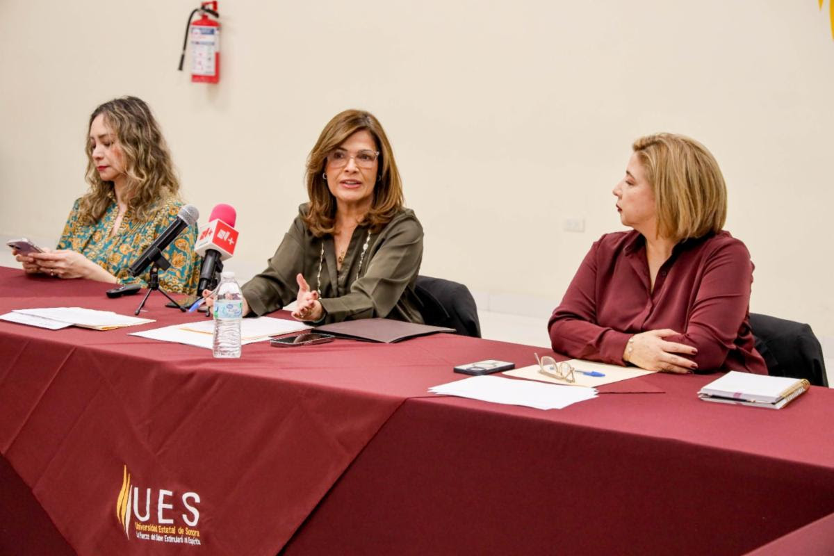 En el panel participaron Karla Paulina Ocaña Encinas, jefa de la Oficina del Ejecutivo Estatal; Sheila Guadalupe Hernández Alcaraz, secretaria de las Mujeres del Estado de Sonora; y Paloma Terán Villalobos, titular del Sistema Estatal de Comunicación Social.