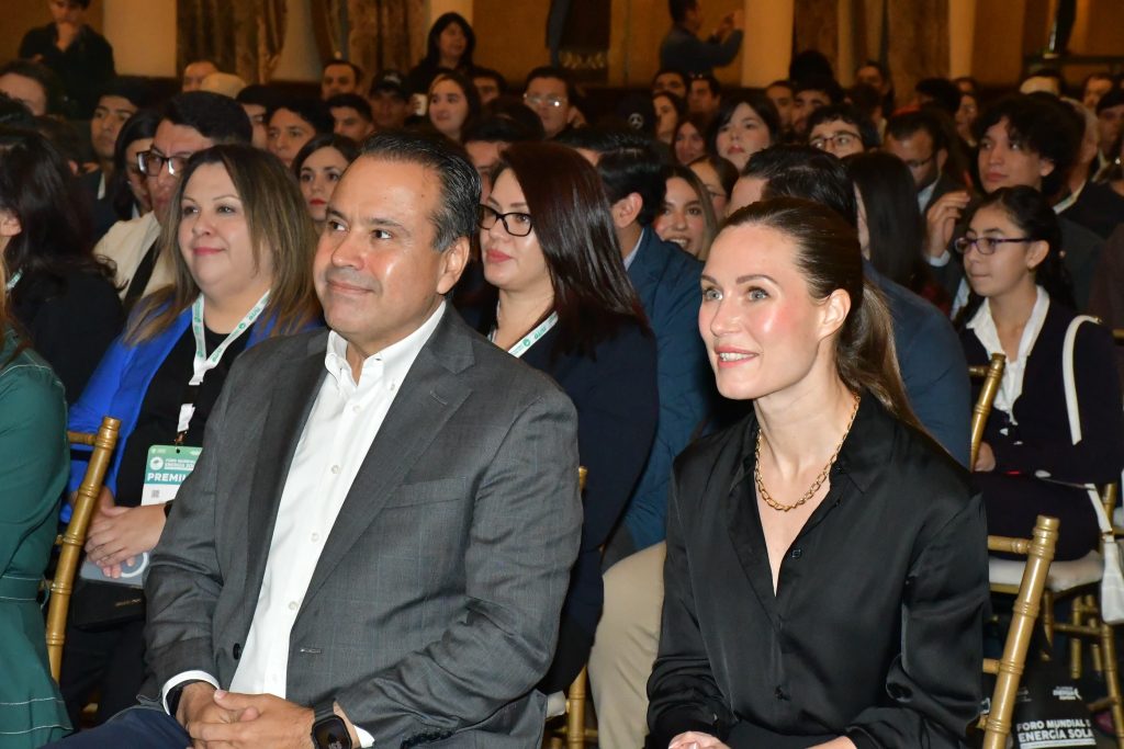 En su calidad de conferencista en el primer día de actividades del Tercer Foro Mundial de Energía Solar, Sanna Marin sostuvo una charla con Antonio Astiazarán, quien le expuso los pormenores de ambas estrategias que promueven el uso de energía solar en la localidad.