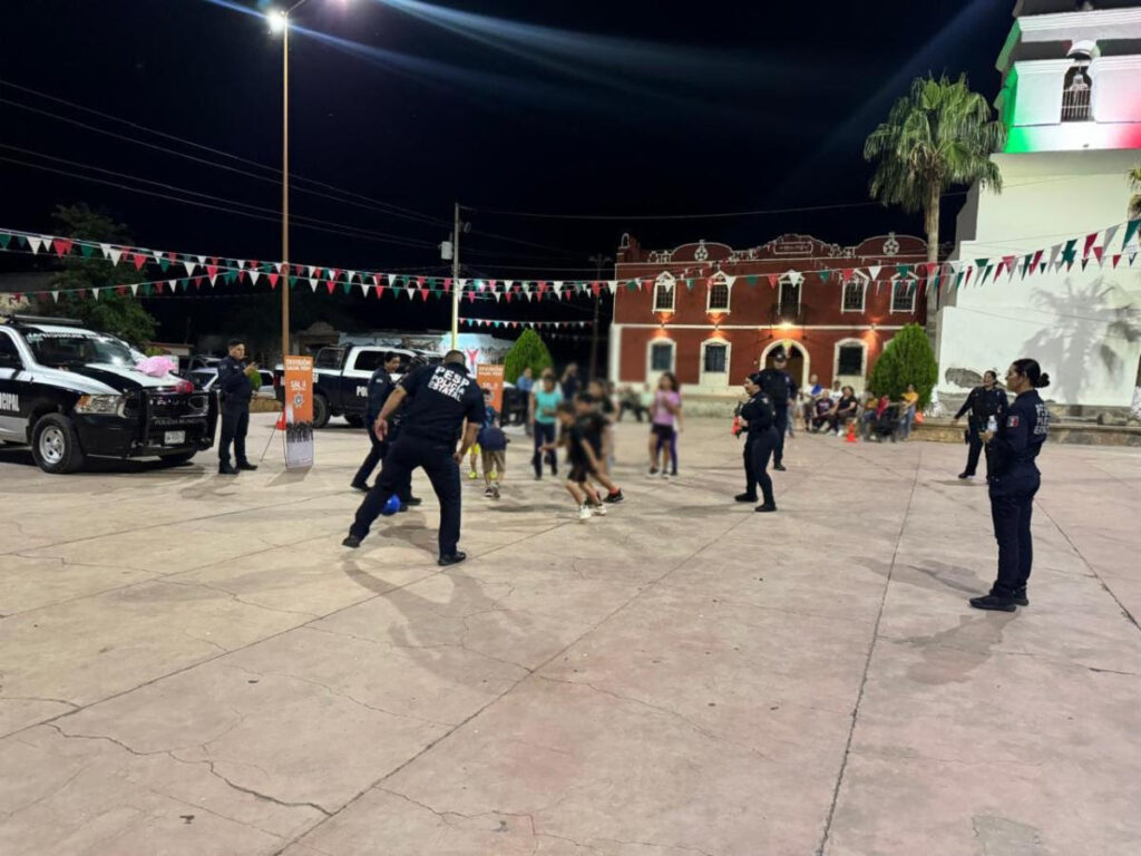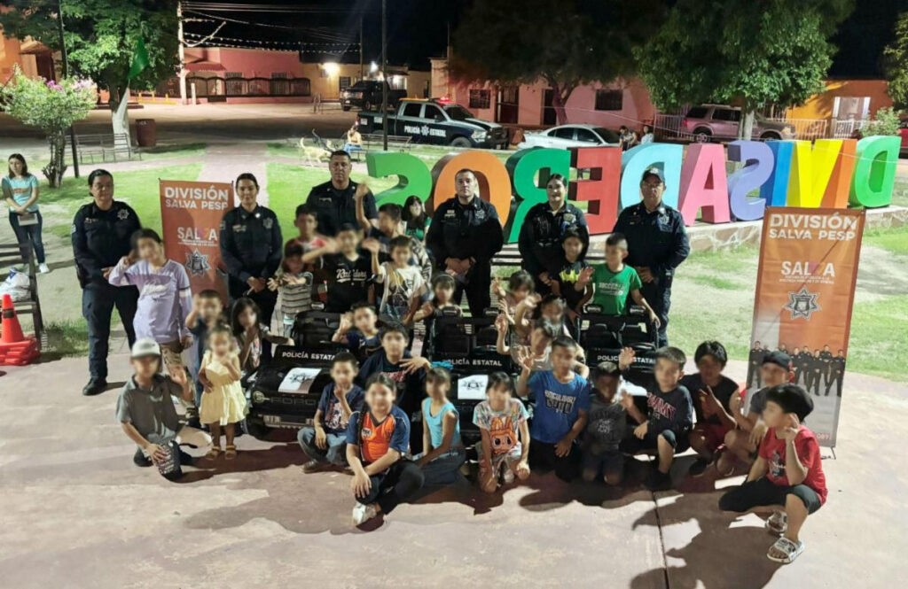 El grupo especializado en el Sistema de Atención a la Violencia Familiar y de Género (SALVA) de la Policía Estatal de Seguridad Pública (PESP) se reunió en la plaza pública de Bacanora para convivir con las familias, informar sobre cómo prevenir la violencia y hacer uso de la línea de emergencias 9-1-1 y 089 para denuncia anónima.