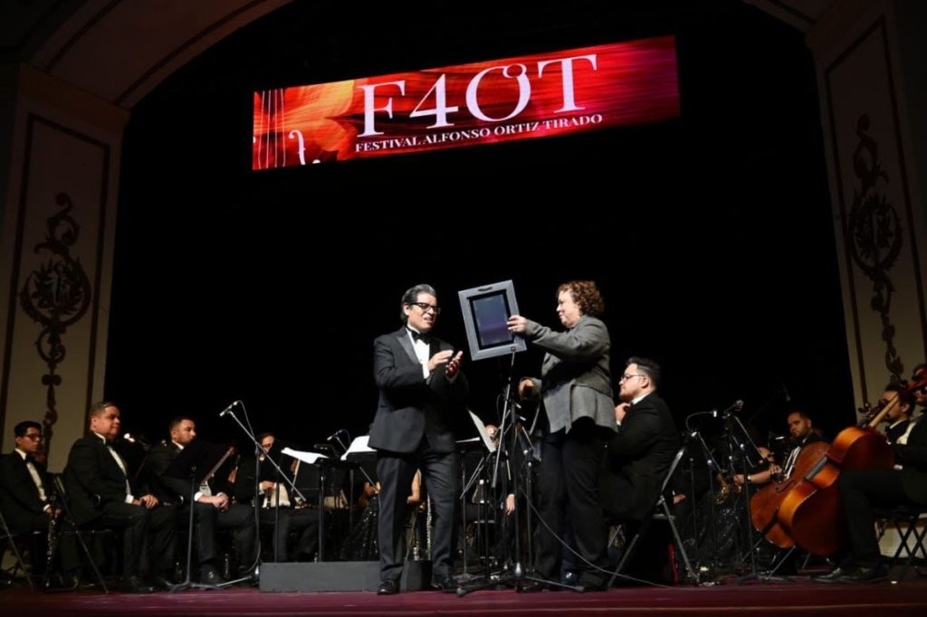 Álamos, Sonora; 26 de enero de 2025.- En la segunda noche de gala del Festival Alfonso Ortiz Tirado, los asistentes pudieron deleitarse con la presentación de la soprano Othalie Graham y la Banda Sinfónica del Estado de Sonora, la cual recibió un reconocimiento por sus 45 años de trayectoria.