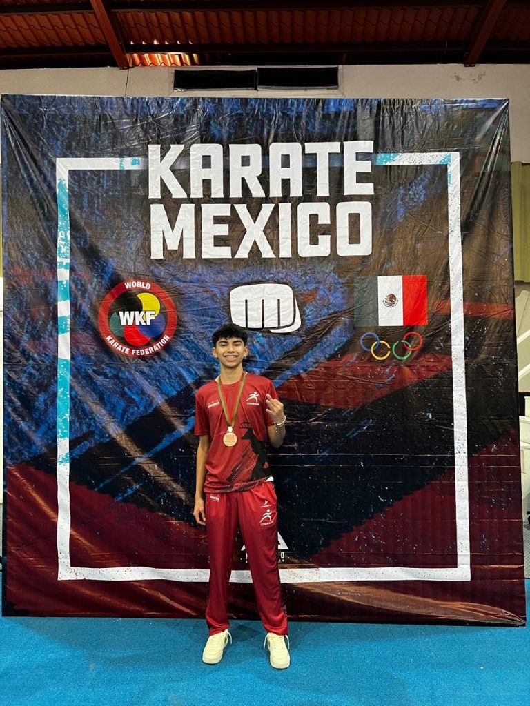 La funcionaria estatal añadió que el alumno, de la carrera de aire acondicionado en dicho plantel, ha obtenido un sinfín de reconocimientos, entre los que destacan dos medallas de oro en el pasado Torneo Mundial Canadá Open Karate Championship, celebrado en Vancouver, Canadá a inicios del 2025.