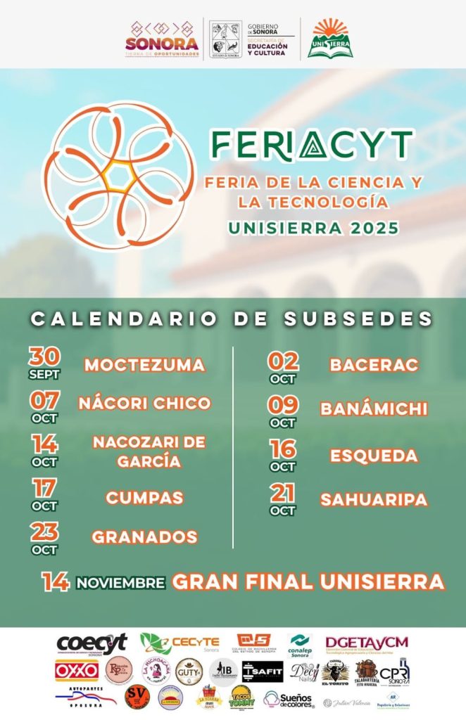 Moctezuma, Sonora; 22 de agosto de 2025.- Como parte del compromiso de fortalecer la investigación, así como la creatividad científica y tecnológica entre estudiantes de nivel básico, medio superior y superior de la región serrana de Sonora, la Universidad de la Sierra (Unisierra) llevará a cabo la cuarta edición de la Feria de la Ciencia y Tecnología (Feriacyt).
