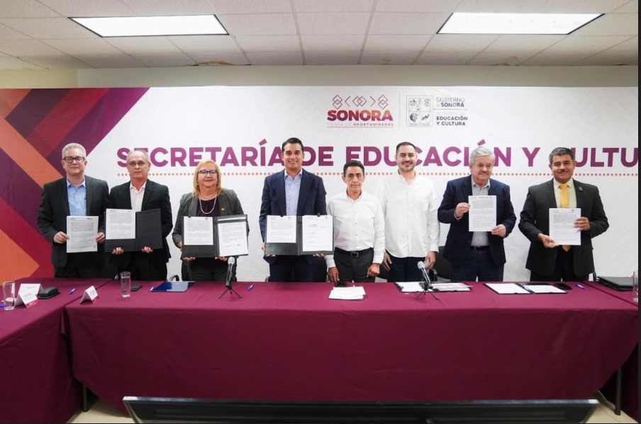 El funcionario estatal firmó el documento con la rectora de la Universidad de Sonora (Unison), María Rita Plancarte Martínez; los rectores de El Colegio de Sonora (Colson), José Luis Moreno Vázquez, y del Instituto Tecnológico de Sonora (Itson), Jesús Héctor Hernández López.