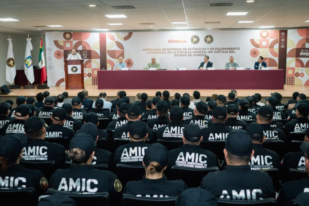 – Elementos de la Fiscalía General de Justicia del Estado (FGJE) fueron beneficiados por el gobernador Alfonso Durazo con la entrega de estímulos económicos que suman en total más de un millón de pesos, unidades, vehículos forenses, uniformes, equipo fotográfico, armamento y municiones.
