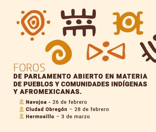 • 3 de marzo, en el Auditorio del Congreso del Estado, en Hermosillo, para las comunidades seris (comca’ac), pápagos (Tohono O’odham), cucapás y apaches.