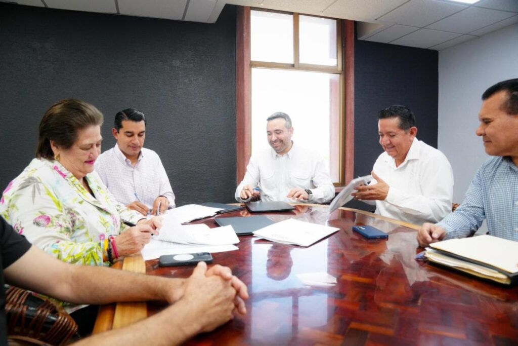 Los secretarios de Educación y Cultura (SEC), Froylán Gámez Gamboa, así como del Trabajo, David Fernando Soto Alday, atestiguaron la firma del documento que establece los derechos y obligaciones laborales de las y los trabajadores del subsistema de educación media superior, lo que representa un avance significativo en beneficio de la comunidad educativa en general.