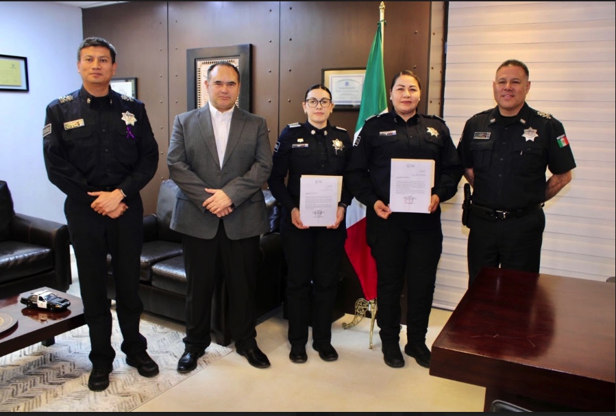 Hermosillo, Sonora; 9 de marzo del 2025.- Como parte de las acciones de mejora en la Secretaría de Seguridad Pública (SSP) para la profesionalización policial, dos oficiales de la Policía Estatal de Seguridad Pública tomaron protesta en nuevos cargos.