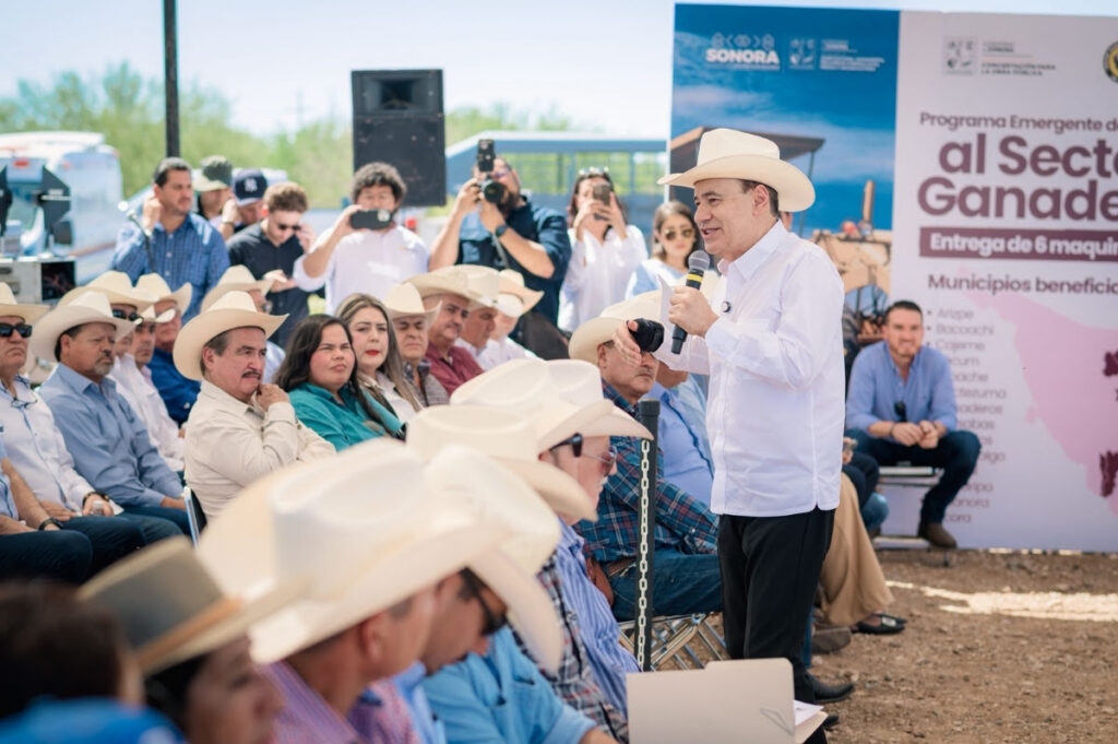 Adicional a la entrega de sementales bovinos, con la aportación del Gobierno de Sonora, a través del Consejo Estatal de Concertación para la Obra Pública (Cecop), se otorgaron 13 maquinarias para 23 municipios, con una inversión de 15 millones 428 mil pesos, de las cuales nueve de ellas ya fueron entregadas en Álamos, Rosario, Quiriego, Navojoa, Huatabampo, Bacerac, Huachinera, Bavispe y Nácori Chico; y en esta ocasión corresponde la asignación para Arizpe, Bacoachi, Cajeme, Bácum, Tepache, Moctezuma, Divisaderos, Huásabas, Granados, Villa Hidalgo, Arivechi, Sahuaripa, Bacanora y Yécora.
