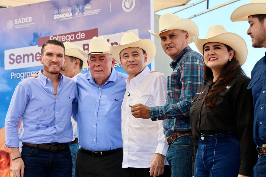 Estuvieron presentes: Leonel Cota Montaño, subsecretario de la Sader; Celida López Cárdenas, secretaria de Sagarhpa; Arturo Macosay Córdova, coordinador general de Ganadería del Gobierno de México; Juan Carlos Ochoa Valenzuela, presidente de la Unión Ganadera Regional de Sonora (UGRS); Juan Manuel González Alvarado, delegado de la Sader en Sonora; Yulia Valeria Guzmán Espinoza, directora general de Coordinación y Seguimiento; Fernando David Palos Ibarra, director general de vinculación interinstitucional; y Luis Alfonso Soto, representante de las y los productores.