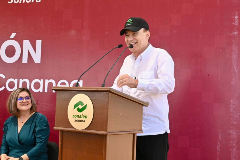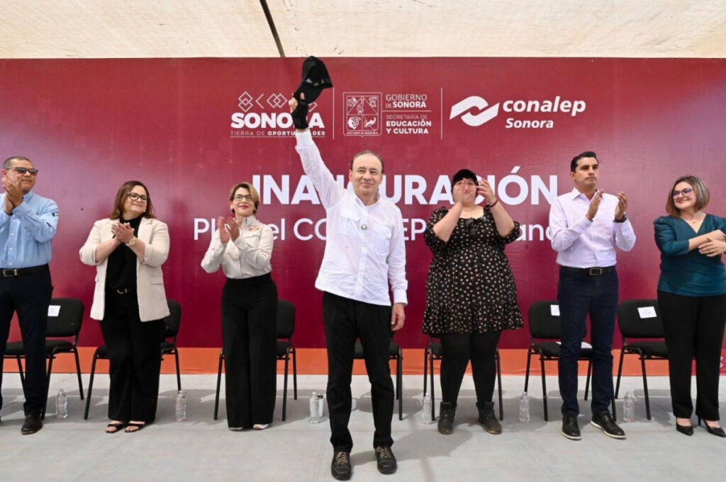 Cananea, Sonora; 26 de agosto de 2025.– En cumplimiento al compromiso con las y los estudiantes cananenses para impulsar la transformación del estado desde las aulas, el gobernador Alfonso Durazo Montaño inauguró las instalaciones del Colegio Nacional de Educación Profesional Técnica (Conalep) de la extensión del plantel Nogales en Cananea, y entregó becas del programa Sonora de Oportunidades para beneficiar a más de mil 370 estudiantes de educación básica y superior.
