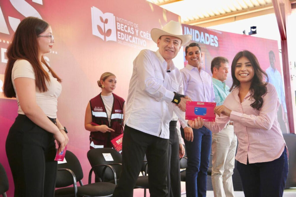 Para complementar el apoyo a la educación en Cananea, el gobernador Durazo benefició a mil 372 estudiantes de nivel básico y superior con becas del programa Sonora de Oportunidades, a fin de garantizar que los alumnos cuenten con las herramientas necesarias para continuar con sus estudios y evitar la deserción escolar. Esta entrega representa una inversión de 7 millones 090 mil pesos, que impactará directamente en la economía de las familias.