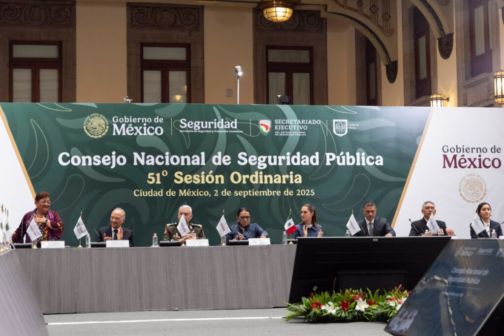 Ciudad de México; 2 de septiembre de 2025.- Con el fin de fortalecer la unidad y la acción coordinada entre los tres niveles de gobierno, el gobernador Alfonso Durazo Montaño reafirmó su compromiso con la Estrategia Nacional de Seguridad en beneficio de las y los sonorenses, durante la Quincuagésima Primera Sesión Ordinaria del Consejo Nacional de Seguridad Pública encabezada por la presidenta Claudia Sheinbaum Pardo.