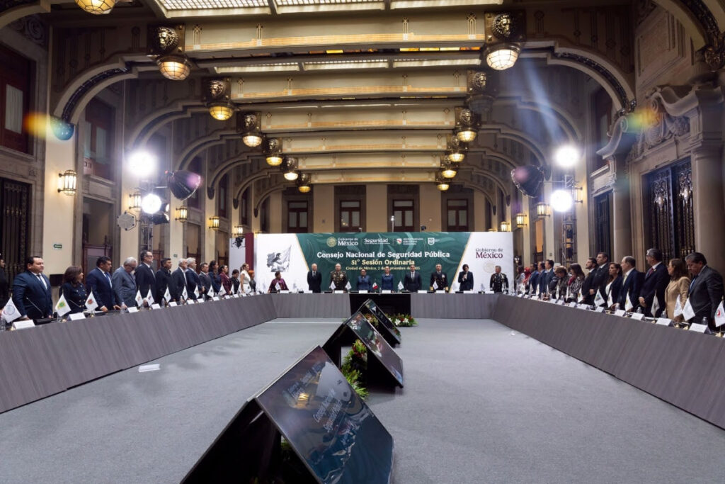 Este encuentro, en el que se presentaron propuestas de modificación a las leyes de Seguridad y de Búsqueda, estuvo también encabezado por el secretario de Seguridad y Protección Ciudadana, Omar García Harfuch. El Consejo Nacional de Seguridad Pública está integrado por titulares de la Secretaría de Gobernación, Defensa Nacional, Marina, Fiscalía General de la República (FGR), los gobernadores de los estados, Comisión Nacional de Seguridad (CNS), y el Secretariado Ejecutivo del Sistema Nacional de Seguridad Pública (SESNSP).