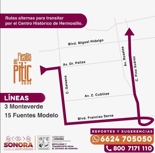 Para más información, sugerencias o reportes, está disponible la Línea de Atención del Imtes, llamando sin costo al 800 71 71 110 o enviando un mensaje por WhatsApp al 6624 70 50 50.
