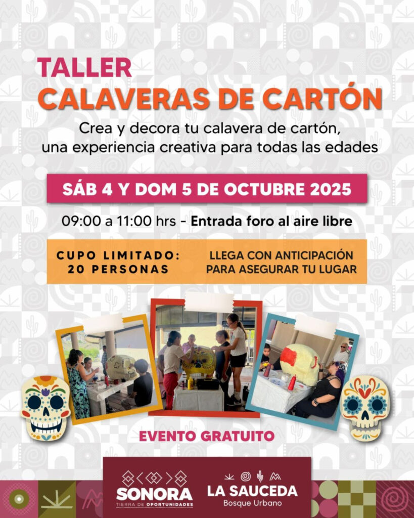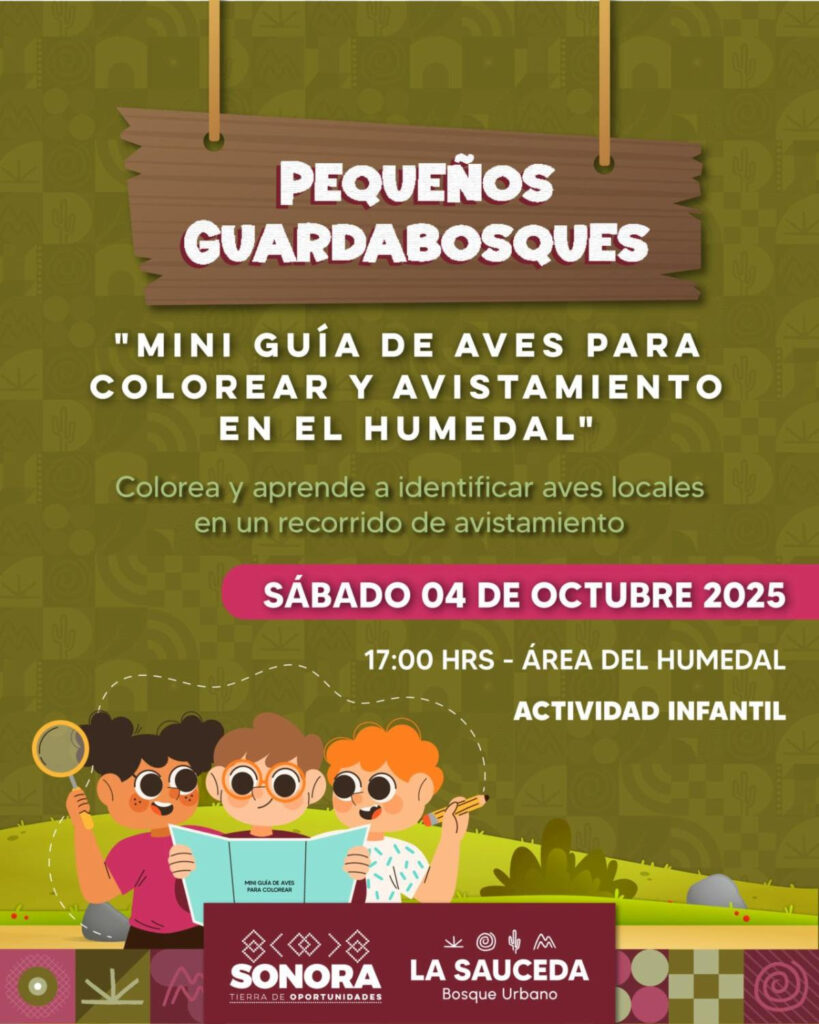 Hermosillo, Sonora; 2 de octubre de 2025.– El Gobierno de Sonora, a través del Bosque Urbano La Sauceda, invita a la comunidad a disfrutar de un fin de semana lleno de actividades gratuitas que combinan cultura, aprendizaje y convivencia familiar en un espacio natural dentro de la ciudad.