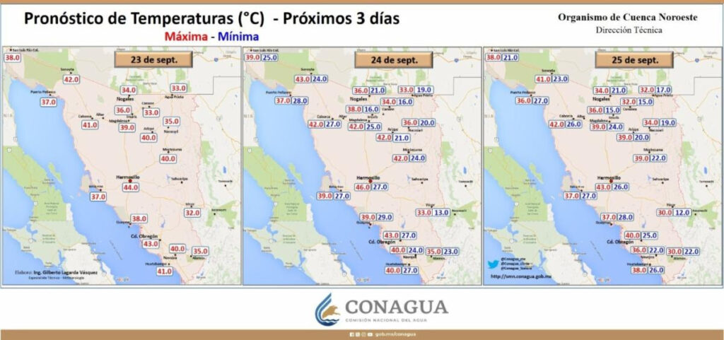 Hermosillo, Sonora; 23 de septiembre de 2025.– Durante los próximos días se pronostica que continuarán presentándose temperaturas muy altas en todo el territorio estatal, por lo que el Gobierno de Sonora, a través de la Coordinación Estatal de Protección Civil (CEPC), hace un llamado a la población a mantener las medidas preventivas.