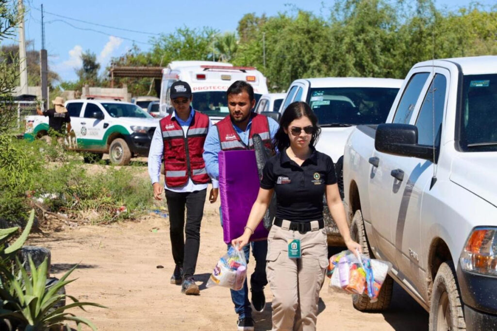 Bahía de Kino, Sonora; 10 de septiembre de 2025.- El Gobierno del Sonora, a través de la coordinación de la Secretaría de Gobierno, mantiene presencia permanente en Bahía de Kino para atender a la población afectada tras el paso del fenómeno meteorológico Lorena.