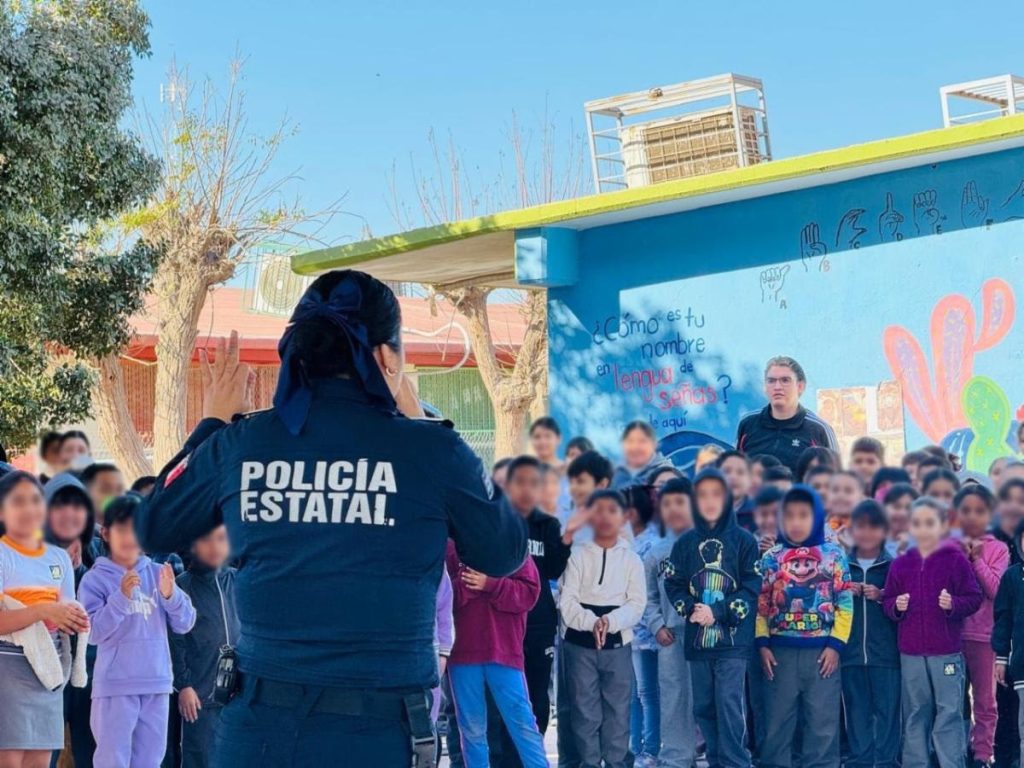Con acciones de prevención en centros educativos, la Policía Estatal tiene la finalidad de invitar a la niñez a convertirse en promotores de la paz en sus hogares, escuelas y colonias, replicando lo aprendido.