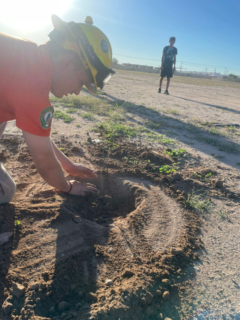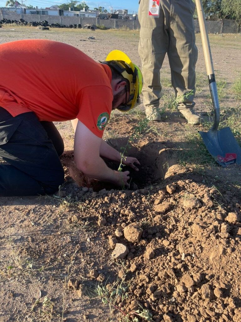 Hermosillo, Sonora; 3 de octubre de 2025.- La Brigada Estatal de Manejo de Fuego de Sagarhpa y Protección Civil Sonora realizó acciones de reforestación en la zona sur de la ciudad de Hermosillo.