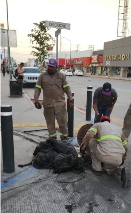 “Queremos hablar de un tema muy delicado que ya se encuentra con la denuncia correspondiente, porque aun cuando todavía no llovía se empezó a ver drenaje por todo el Centro de Guaymas, de inmediato pedimos la ayuda con maquinaria y encontramos costales de arena en un tubo de 24 pulgadas de forma intencional”.