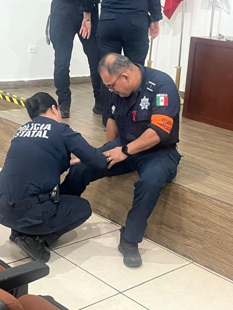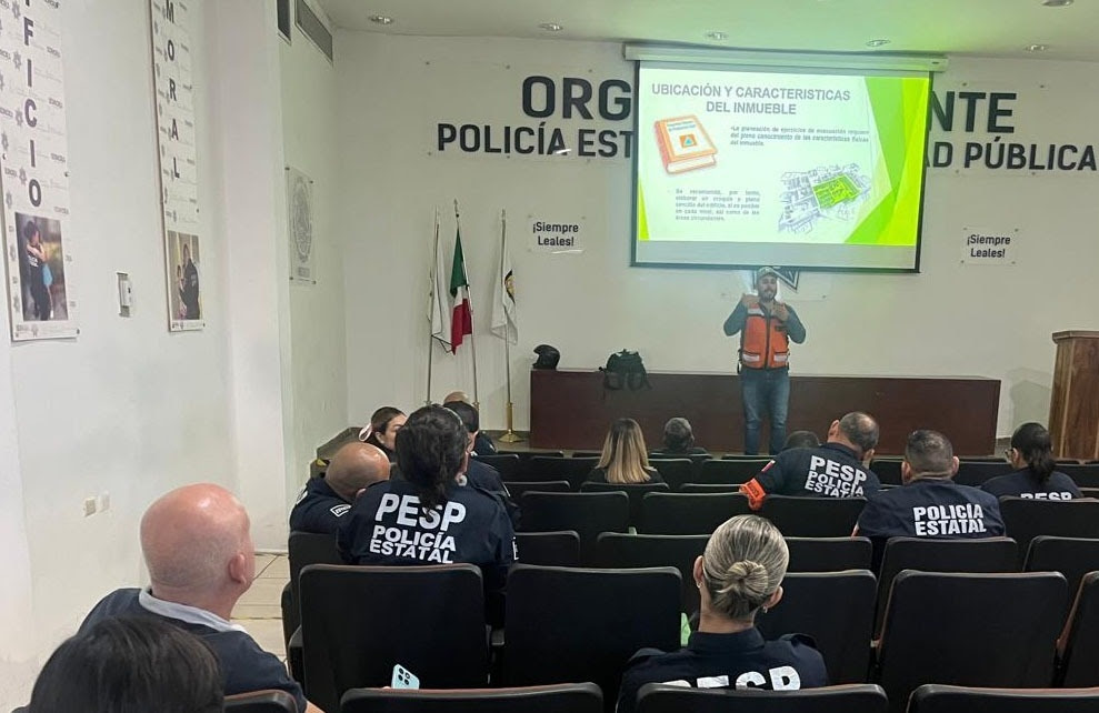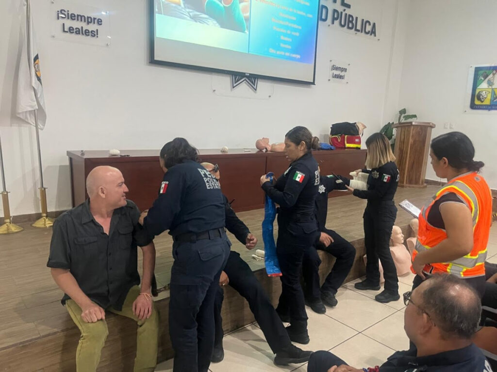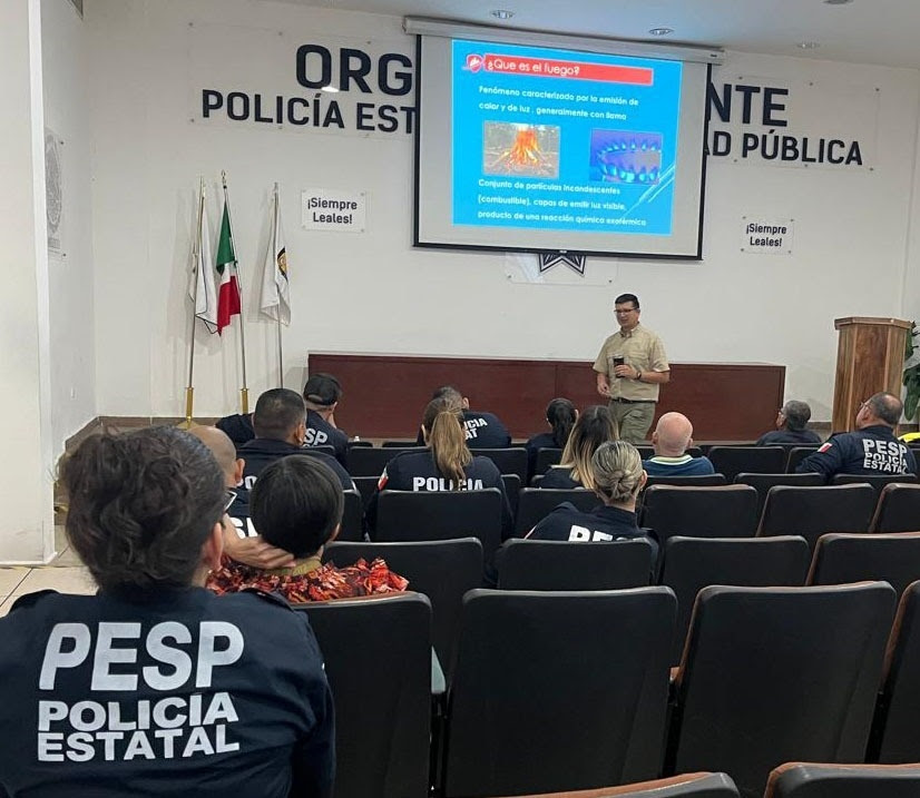 Oficiales de la PESP mejoran sus prácticas para atender emergencias y brindar apoyo de manera efectiva, por lo que reciben formación como brigadistas en temas de primeros auxilios, combate de incendios, evacuación, búsqueda y rescate, en la base operativa de la corporación en Hermosillo, por parte de personal especializado.